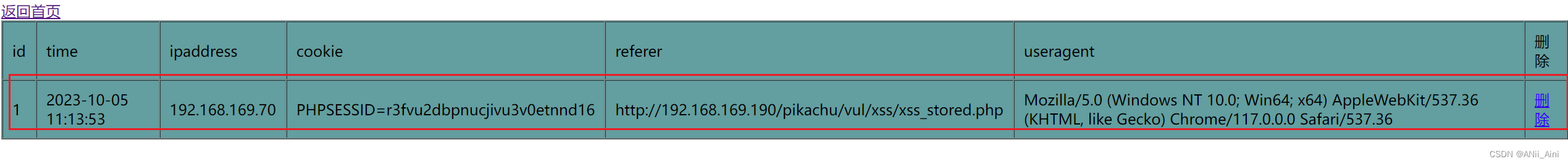 所以当有人触发payload的时候,就会收集cookie 信息发给目xss后台,保存到数据库了http://192.168.169.190/pikachu/pkxss/xcookie/cookie.php